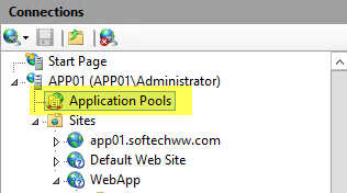 1. Log in to the Application Server and open “Internet Information Services (IIS)” and run it as administrator.