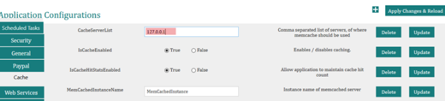 4. Replace the default IP 127.0.01 and enter the IPs of all Application Servers as comma separated entries and press the “Update” button in line. When done, click on “Apply Changes & Reload” button on the top.