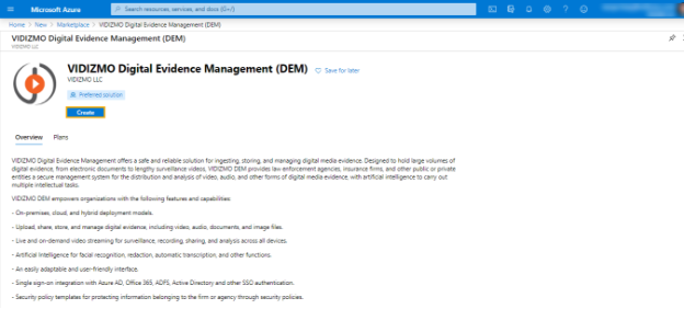i. Use the VIDIZMO's public listing on Azure Marketplace, for this;