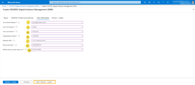 i. Your Email Address: Provide your email address for VIDIZMO application details to be sent by Azure.