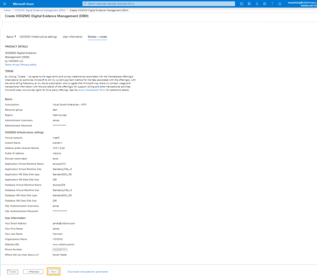 How to setup VIDIZMO Digital Evidence Management Virtual Machine on Azure Marketplace