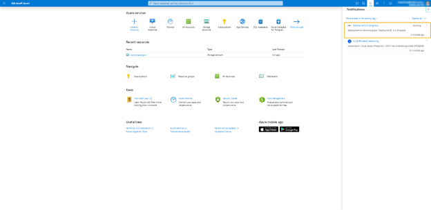 9. The VM deployment progress can be seen through the notifications tray.