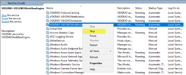 1. First of all “STOP” “VIDIZMO Workflow Service” in all the Application servers.
