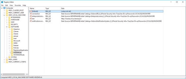 2. "notificationconnection"= "Data Source=;Initial Catalog= VidizmoNotificationSystem\\_6\\_0;Persist Security Info=True;User ID=;Password=" 3. "link"=""