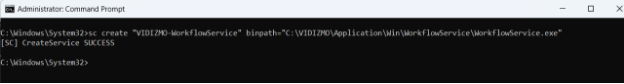 sc create "VIDIZMO-WorkflowService" binpath="C:\\VIDIZMO\\Application\\Win\\WorkflowService\\WorkflowService.exe"