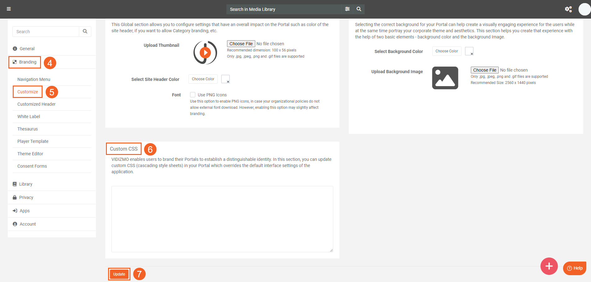Branding is essential to your VIDIZMO Portal as it significantly impacts your users' experience and strongly emphasizes your brand voice, theme, or tone. VIDIZMO provides the tools to customize various aspects of your Portal, such as your Portal thumbnail or header.