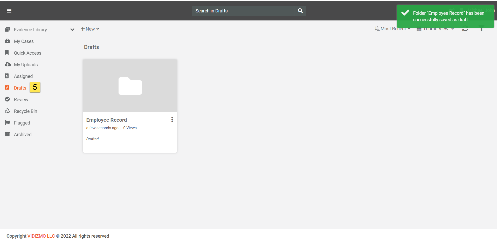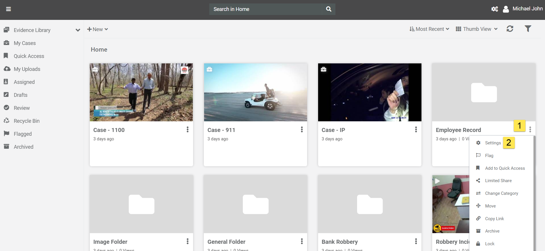 Note: You can create folder in evidence library, home, within any case or any folder.If moderation is on, folder will go on moderation.