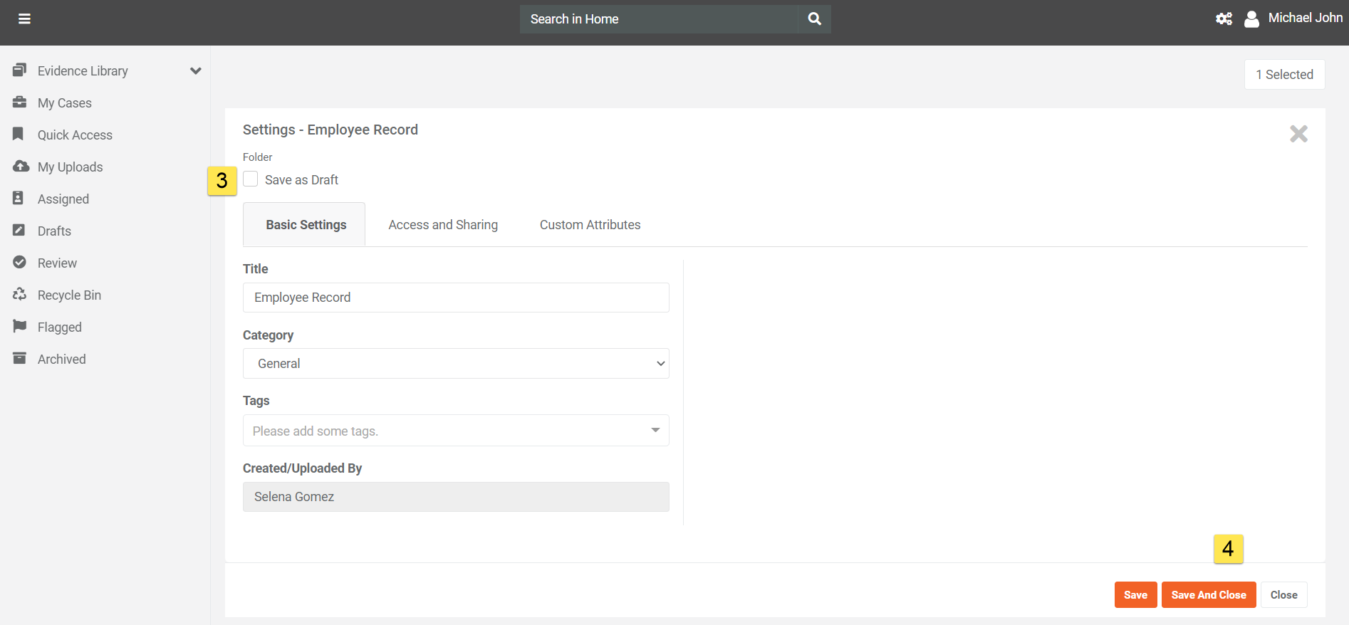 The flexibility of folder access rights extends to evidence files as well. Enabling the toggle for inheriting main (parent) folder access rights on evidence files streamlines the process of managing permissions. Users can easily decide whether an evidence file should inherit rights from its main folder or maintain its individual access settings.