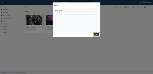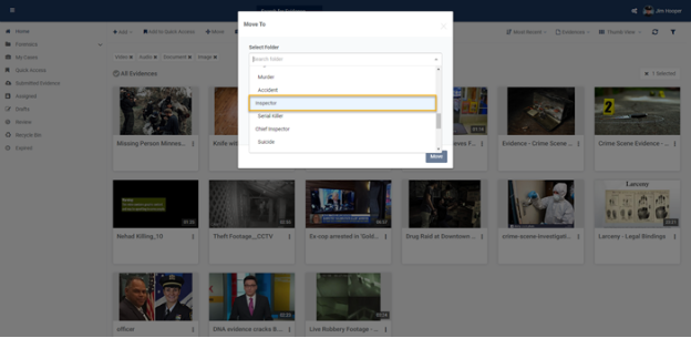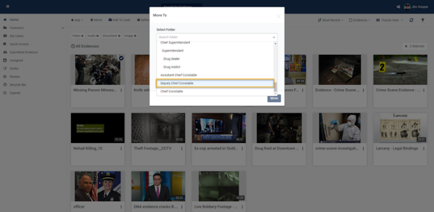 - Select the folder and click on Move. Your evidence will be moved to another folder.