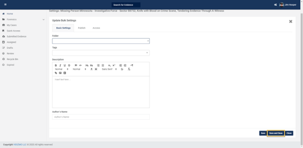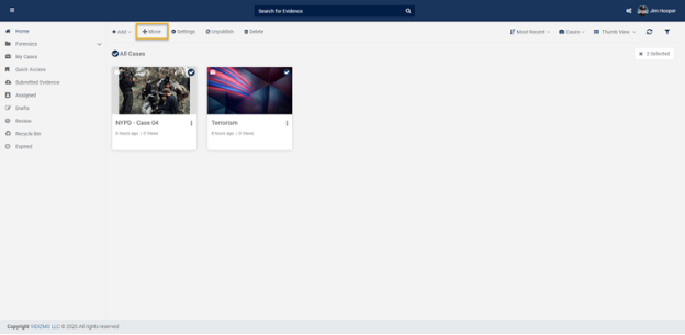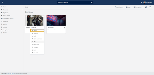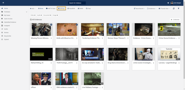 - If you want to move multiple pieces of evidence, by clicking on the Select Option icon, you can select multiple pieces of evidence. After selecting multiple pieces of evidence click on Settings.