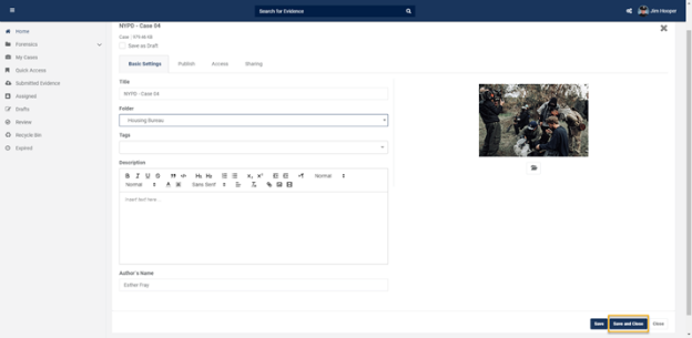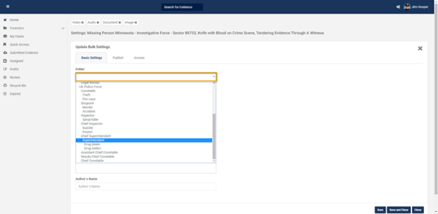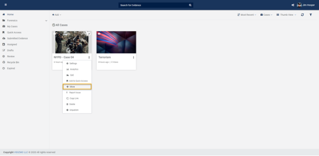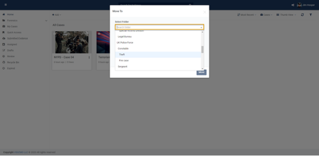 - When you click on Move, a popup dialogue box will appear on the screen, you can select your destination category where you want to move the evidence.