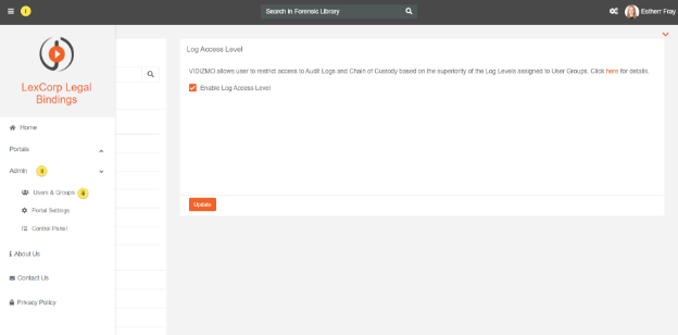 Limiting access to the Audit Logs and Chain of Custody is a vital security functionality of Digital Evidence Management. Log Access Level works in a way that Users with higher access levels can view the Activity trail of users with the same and lower access levels. Whereas, Users with lower access levels are unable to view the Audit Logs and Chain of Custody of users with higher Log Access Level.