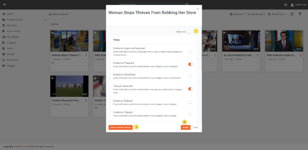 ii. Click on Save as Default Settings if you want to save these settings for all Flagged Evidence.