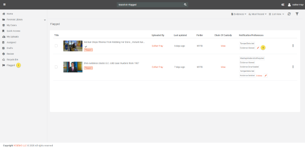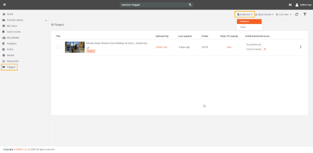 i. Navigate to the Flagged section to view all flagged case/evidence.