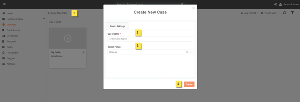 Click on the +Create New Case option.