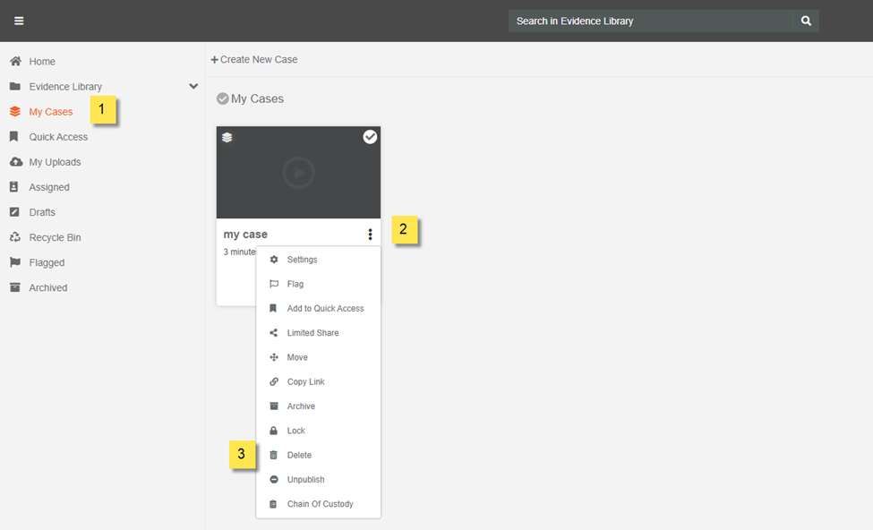 All Moderator+ roles in VIDIZMO DEMS can create and delete a case except for Admin who can do not have the permission to do so.