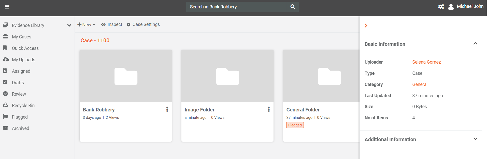 The main component of evidence management includes organizing files, knowing where your evidence is stored and accessing it when required. Every digital evidence we upload must be appropriately handled and saved in our portal to save us time in finding the resource when we need it. The process of identifying and storing this digital evidence inside a logical structure made up of directories and subdirectories should also be handled with care. In VIDIZMO, Evidence management allows us to take full control over our most valuable digital assets by creating digital logical folders and subfolder, and easy access when needed. Folders help you keep your files organized and separate. If you had no, your documents, videos, and other evidence would all be in the same place.