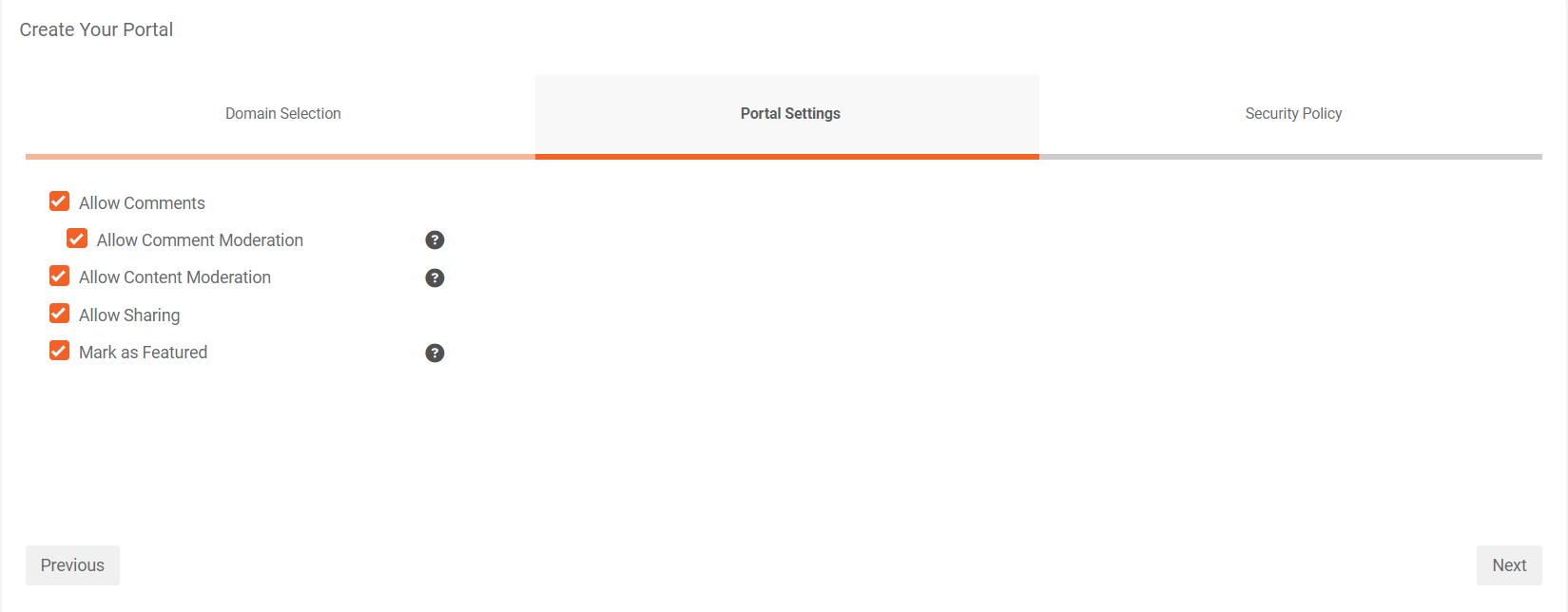 iii. When creating a new portal, you have to provide information in a series of steps spread over three tabs:
