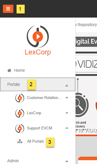 v. On the Portal's Homepage, click on the Menu icon on the top-bar to expand the left navigation pane. The newly created Portal is listed here and when you click on the All Portal's link, it is listed there in the All Portal's screen.