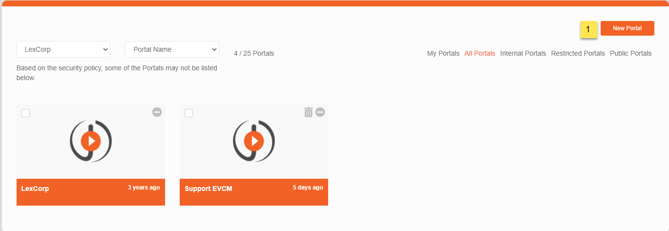 Note: The portal creation feature in VIDIZMO is available only to users in the Portal Manager group or those in a group with the Portal Management feature enabled.There is a limit for creating new portals, but it varies according to the package to which an account is signed up.