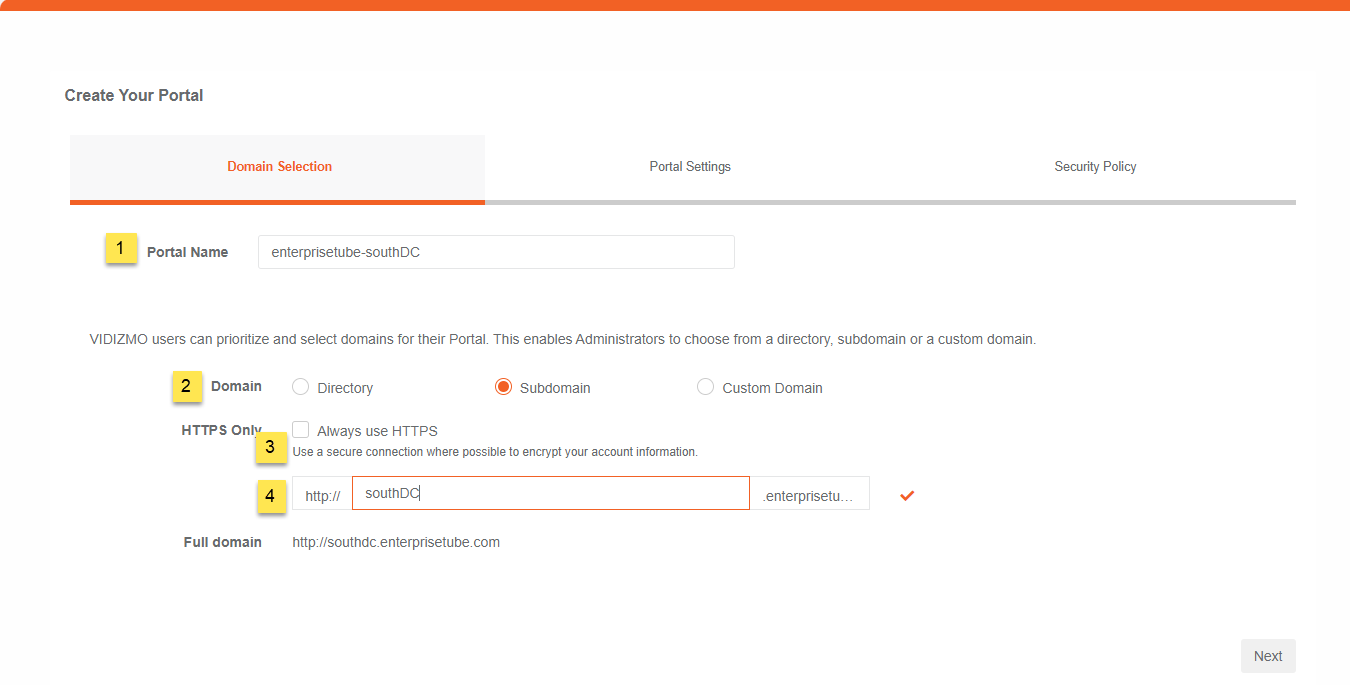 - Enter the name of your subdomain in the Portal Name text field.