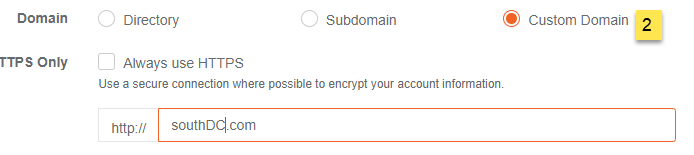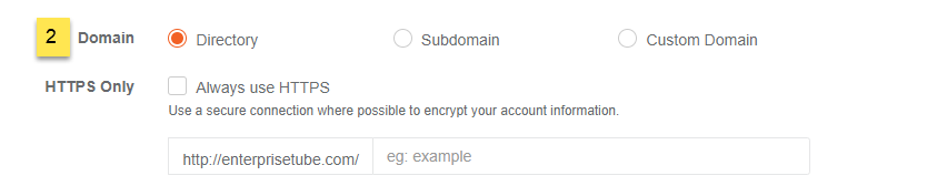 If you do not wish to use subdomains, you can select the Directory option and define the directory under your main domain.