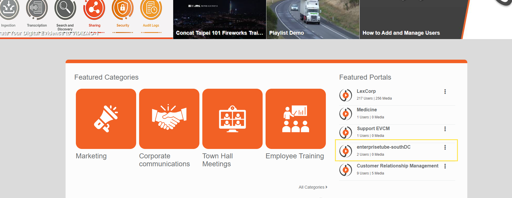 Creating different Portals in VIDIZMO allows you to provide a single installation of dedicated multi-tenant portals, with complete media and user segregation that provides portal-level autonomy for defining all portal management policies, branding, streaming, etc. to meet department-specific privacy, security and compliance needs.