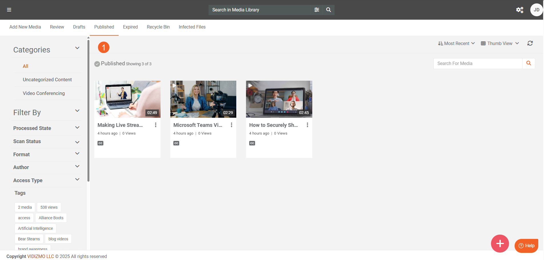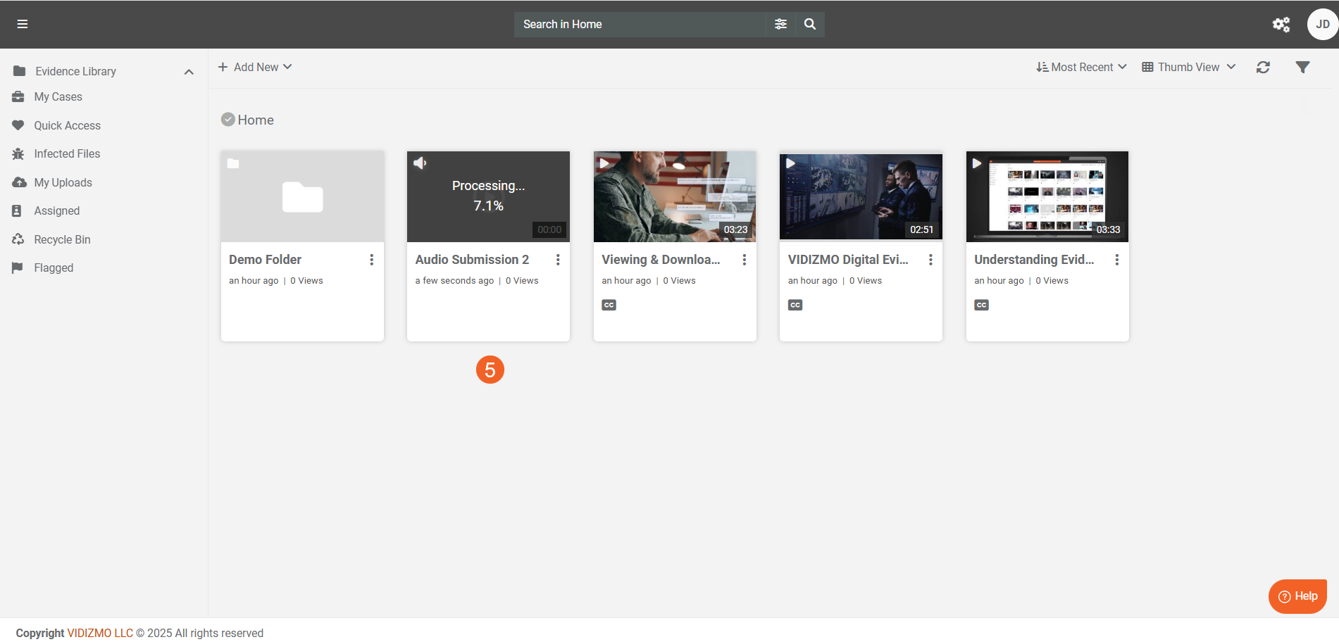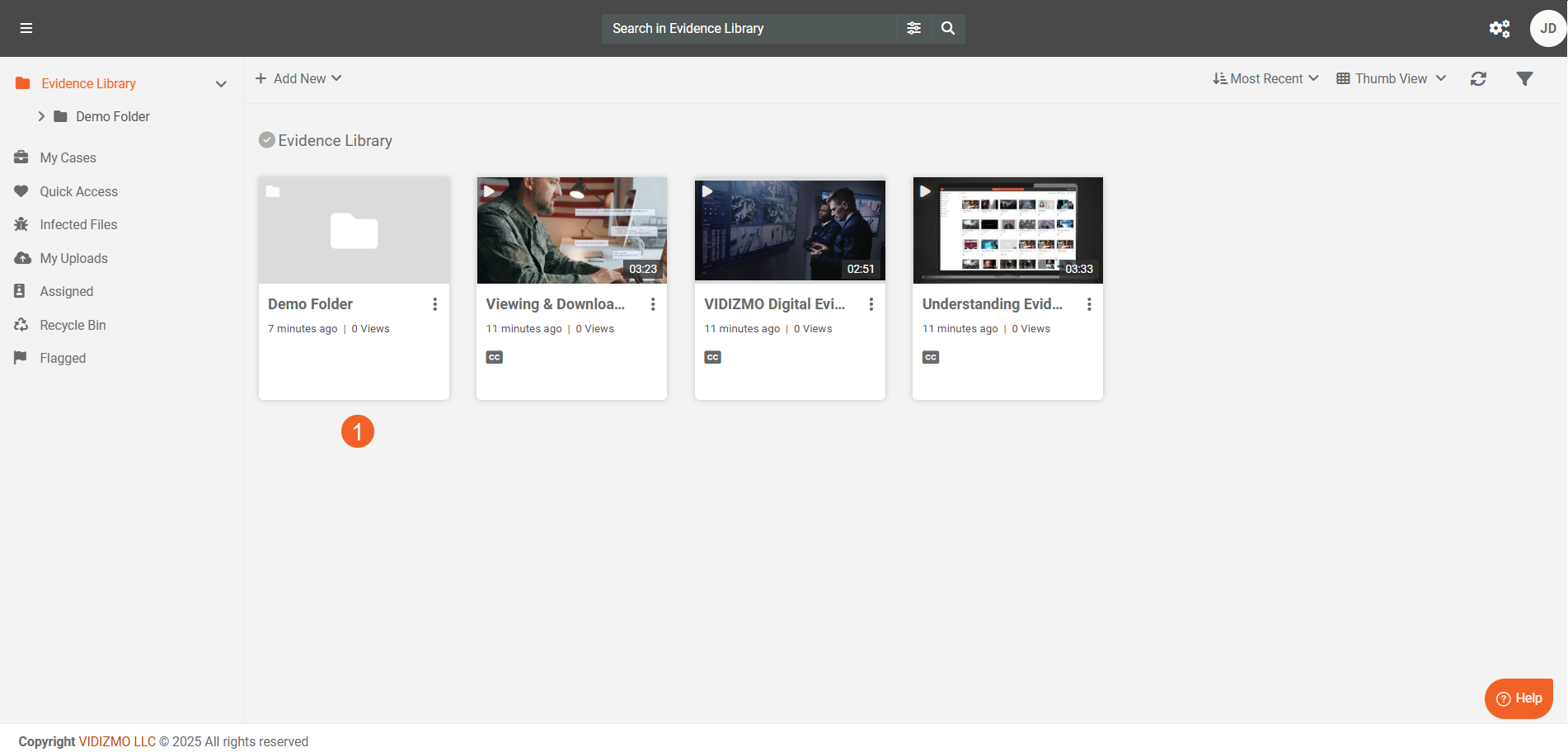 - Navigate to your Portal's Evidence Library, Media Manager or My Library page (based on your permissions and product).