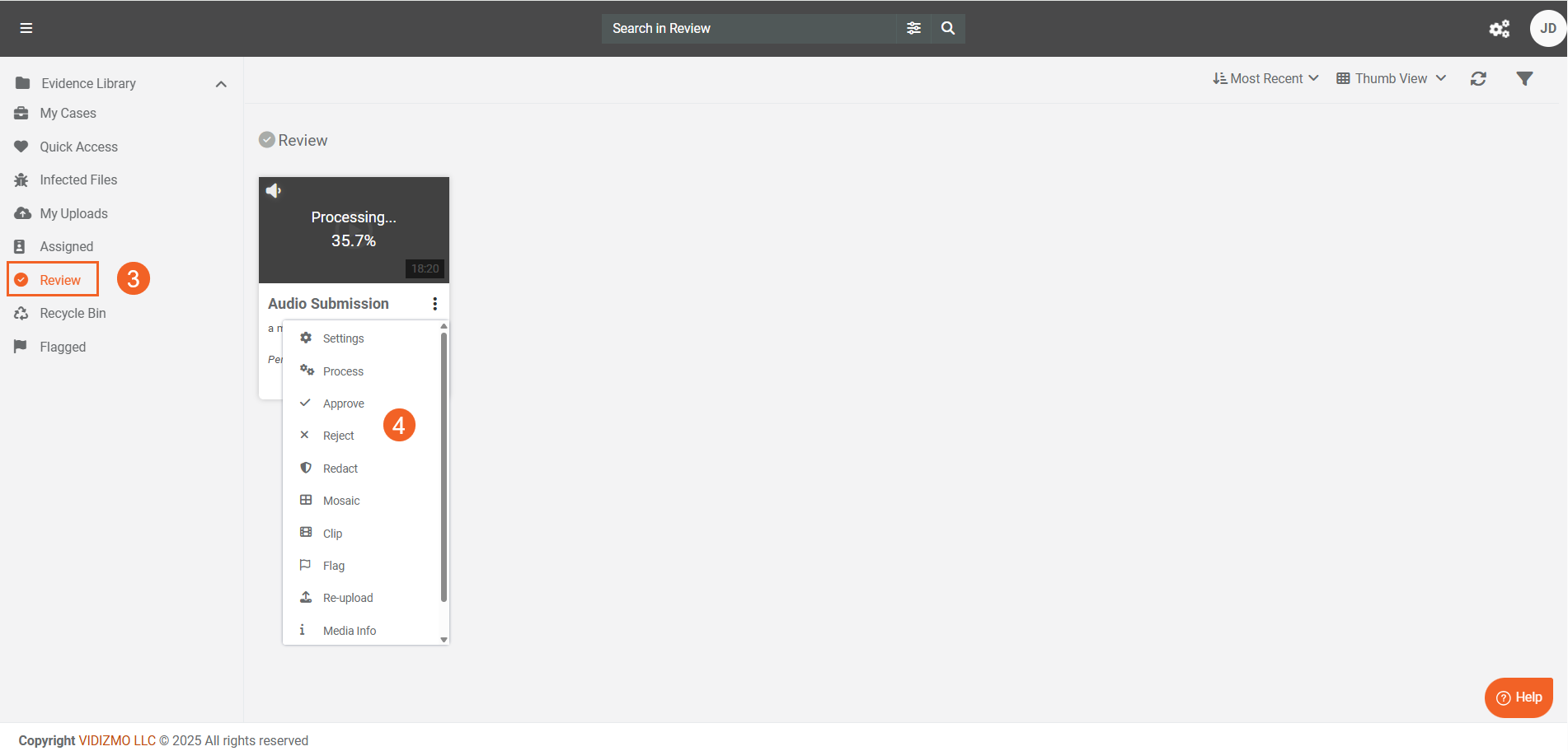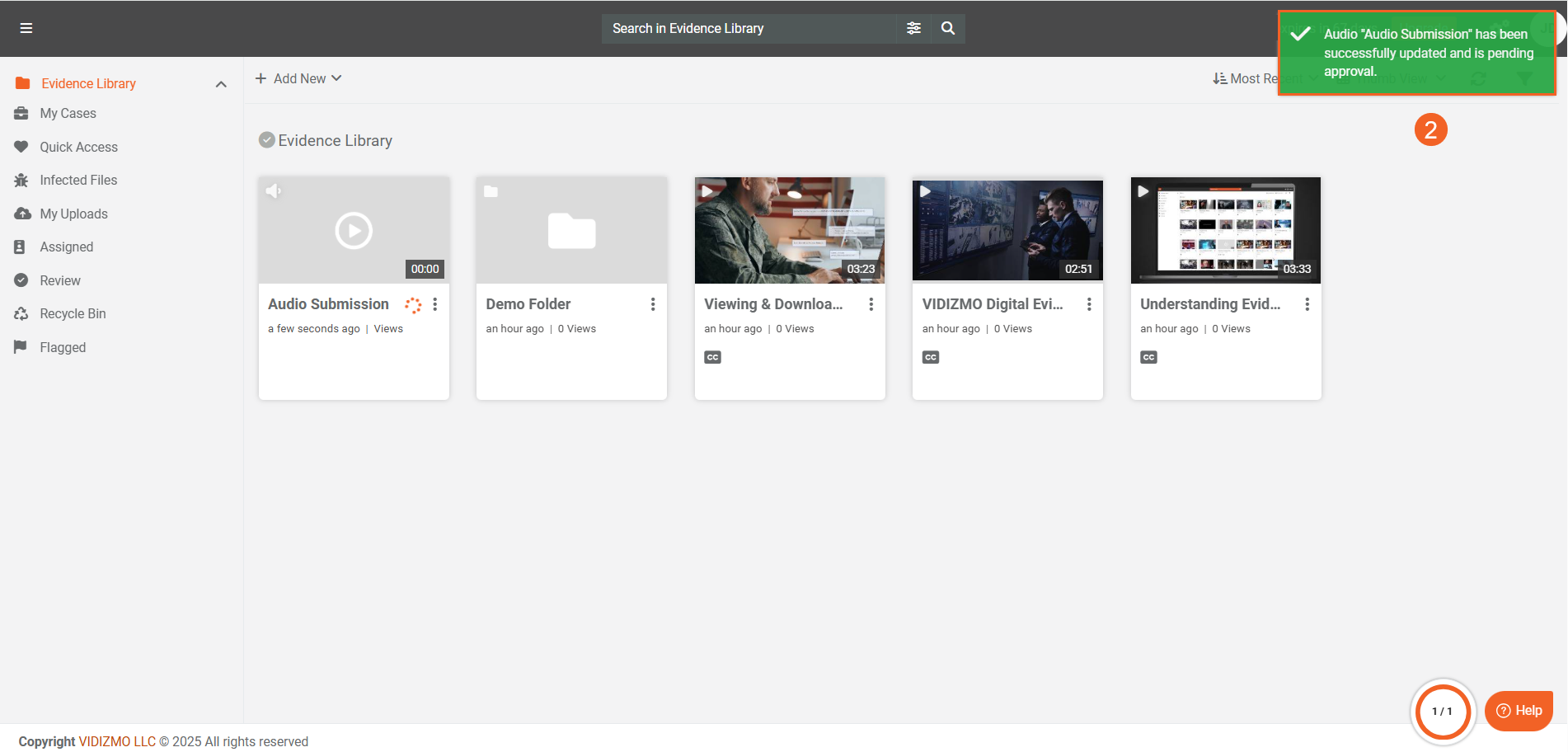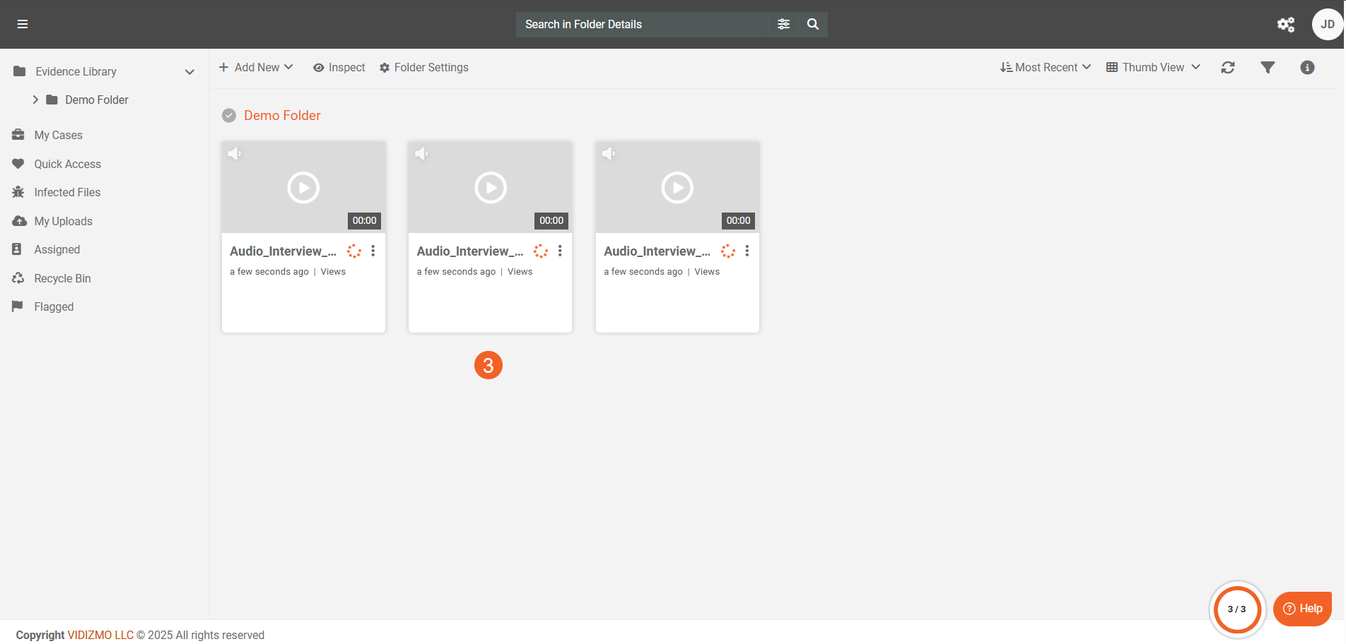 - The file(s) will be uploaded directly to that specific case or folder. Like uploading in the library, the file(s) are automatically published and processed based on your configured settings.