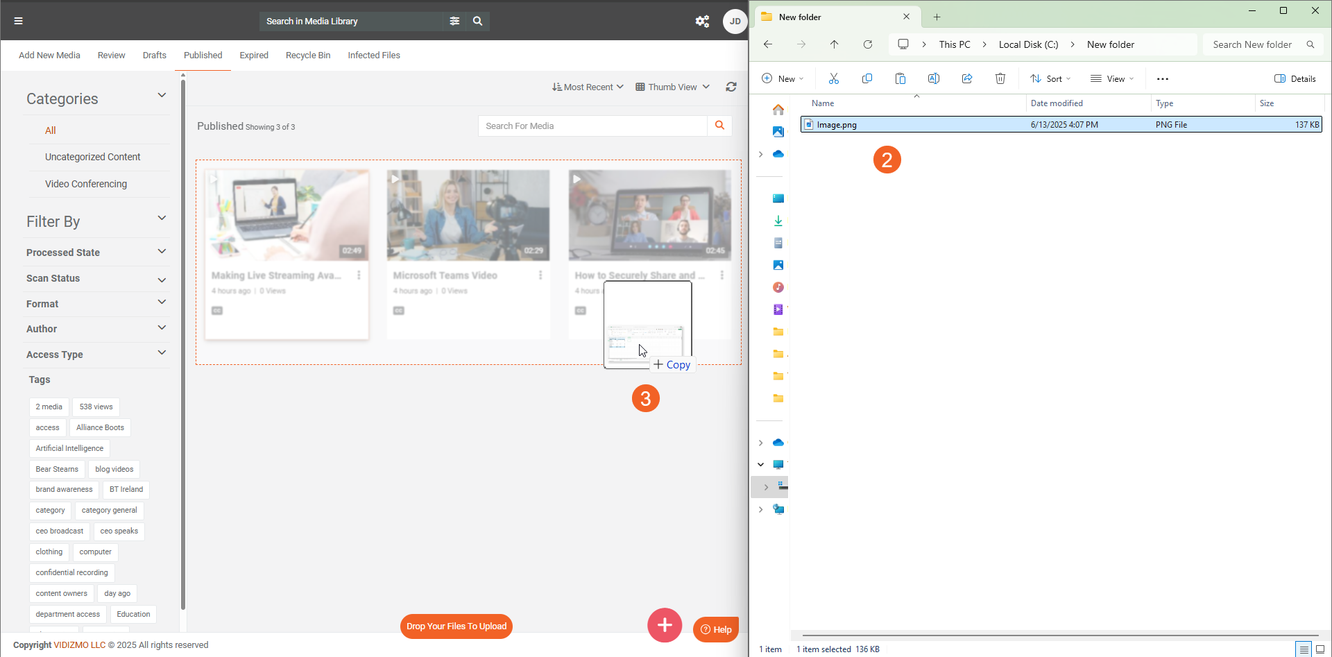 Uploading to VIDIZMO Portal Library using Drag-and-Drop