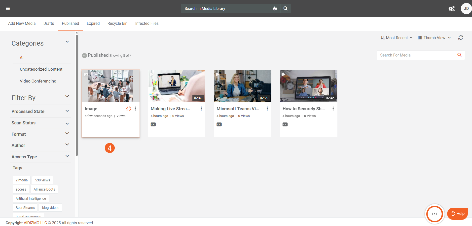 - The files uploaded in bulk will be automatically published and processed based on your default publishing settings and any automatic processing configurations in the enabled applications on your Portal.