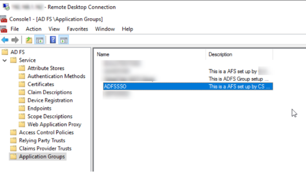 - In ADFS Management, select Application Groups and right-click on ADFSSSO (created in step 1) application and select properties. (This will help you configure/transform the Issuance Transform Rules, which are used by VIDIZMO to authenticate the login process using ADFS)