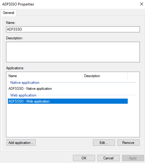 - Select and edit the ADFSSSO - Web application.