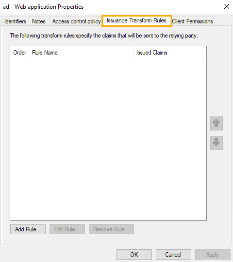 - Select Issuance transform Rules Tab and select Add Rule.