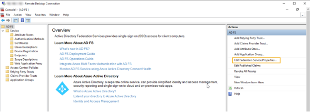 - Select Edit Federation Service Properties.