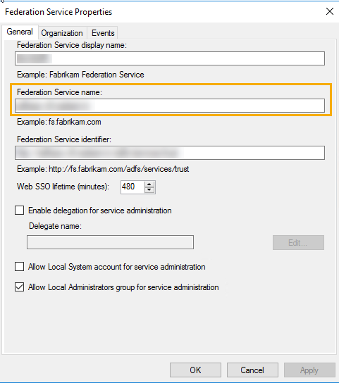 - Copy your Federation Service Name.