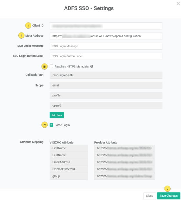 i. Enter the Client Identifier you copied in step 2 of ADFS Configuration.