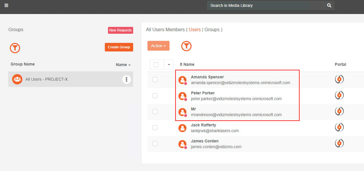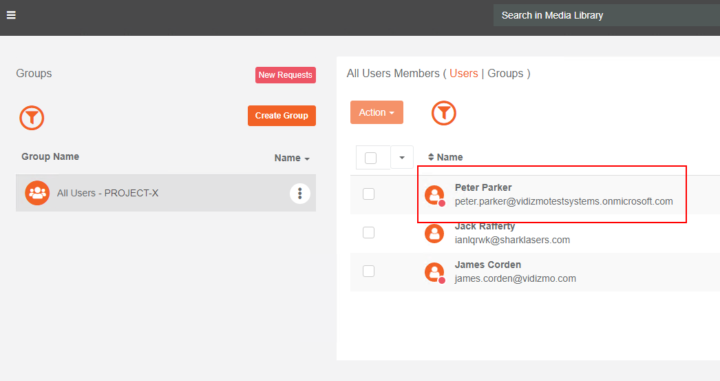 - Wait for the provisioning time interval to complete and then check your VIDIZMO portal > Users and Groups.