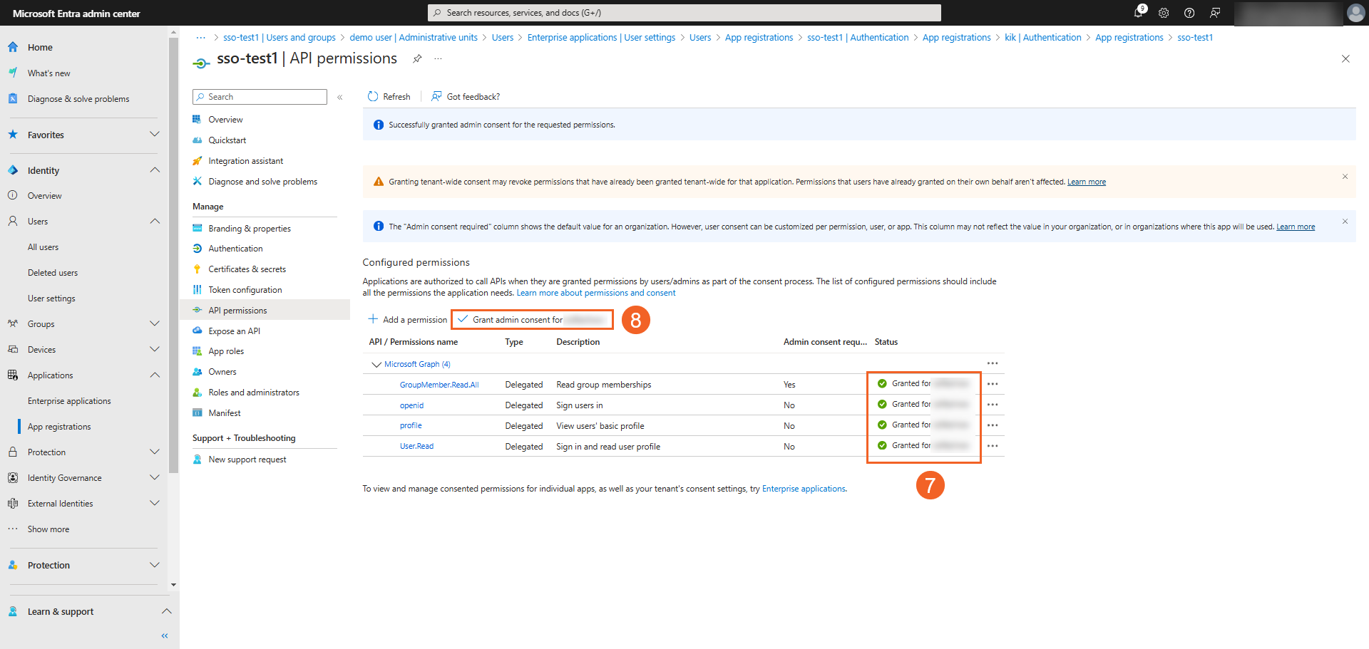 - Click Grant admin consent for your organization's name to grant those API permissions that require admin approval. To do this, you need to have a role that has this permission, or you would need to contact an administrator.