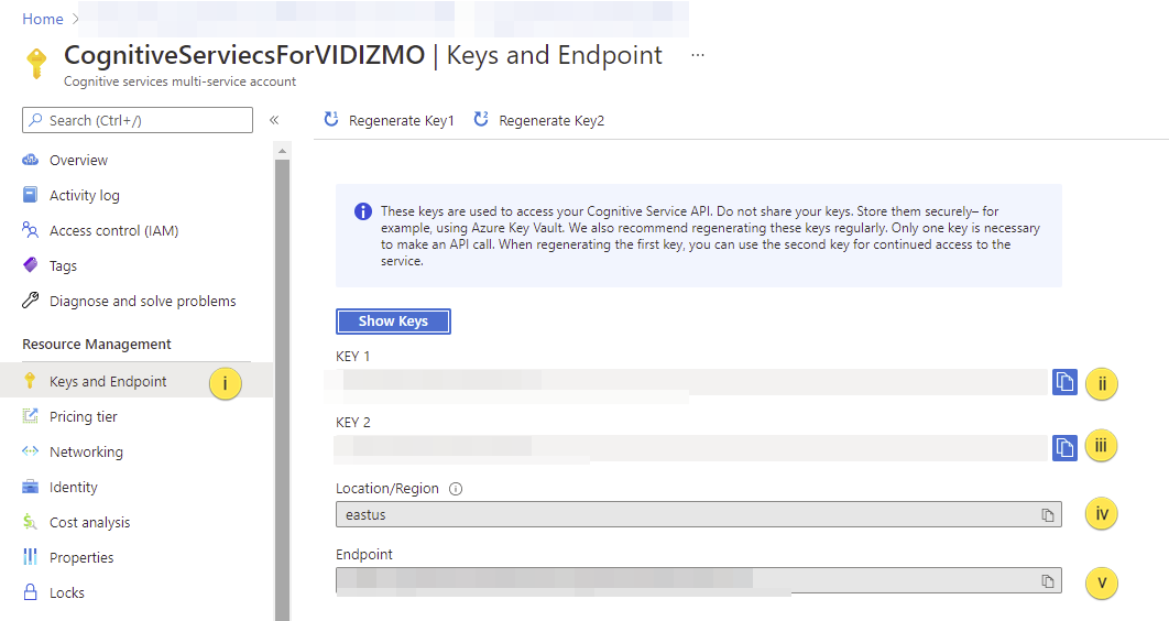 In the Azure Cognitive Services - Settings dialog, configure the following: