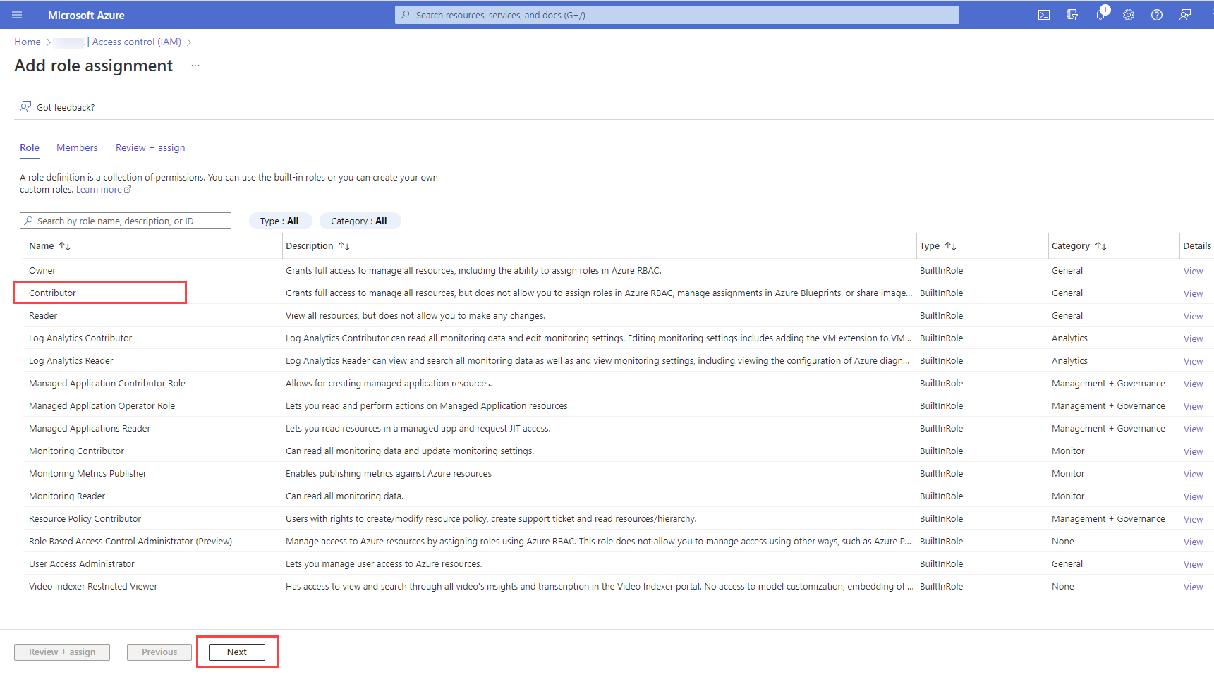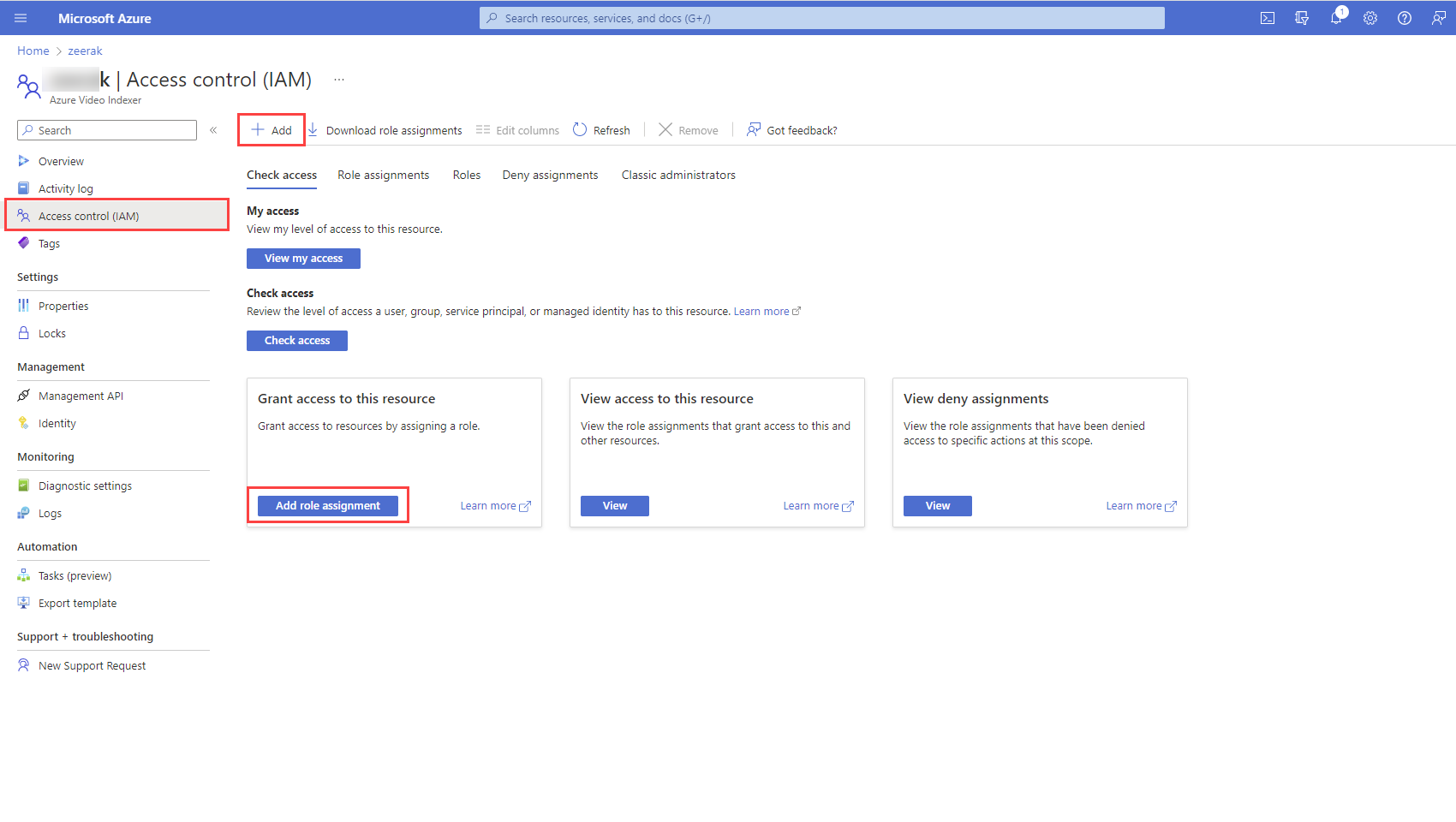 NOTE: To avoid any authentication issues, follow the same steps for media service and storage accounts associated with the Azure Video Indexer.