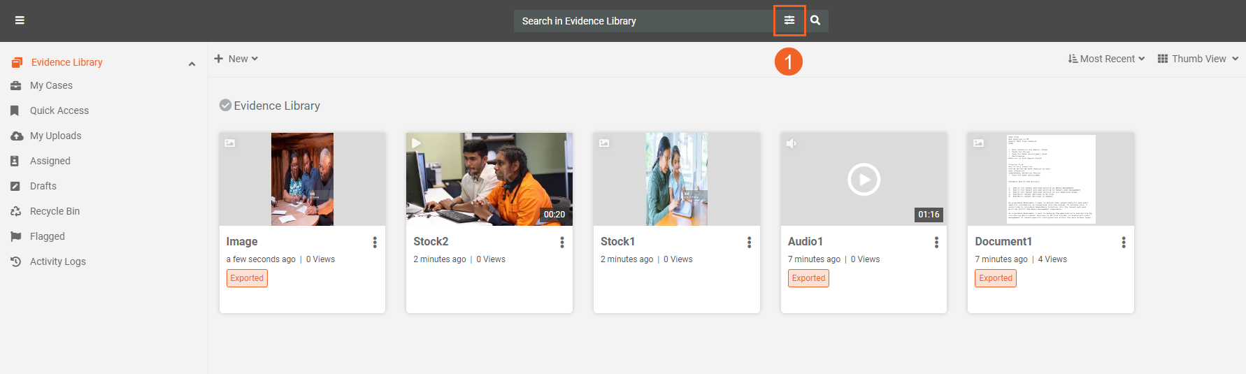 In addition to attributes, the advanced search includes additional fields related to properties that your Portal content can have. Examples of these properties are AI Processed, Redacted, Clipped, and more. Let us demonstrate how you can use advanced search to display all Portal content that has undergone the Export Activity: