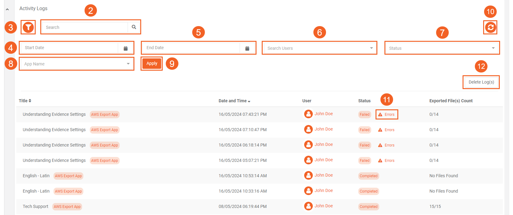 12. Lastly, you can purge or permanently delete the records from the export activity logs via the “Delete Log(s)” button.