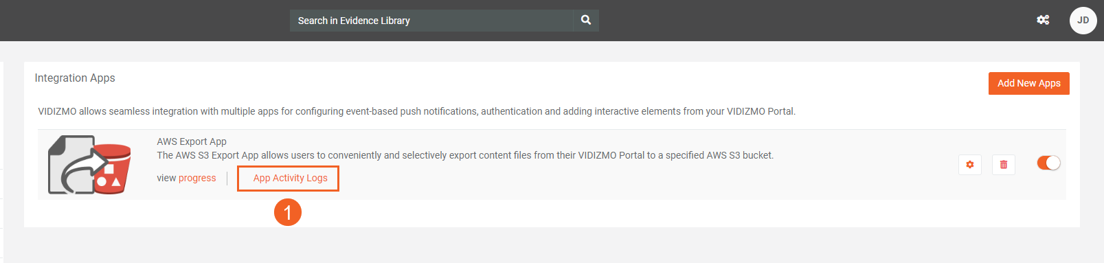 For instance, if a video named "ABC.mp4" was exported by an app called "AWS Export App," then the "AWS Export App" tag will appear next to "ABC" on the log under Title for this export activity.