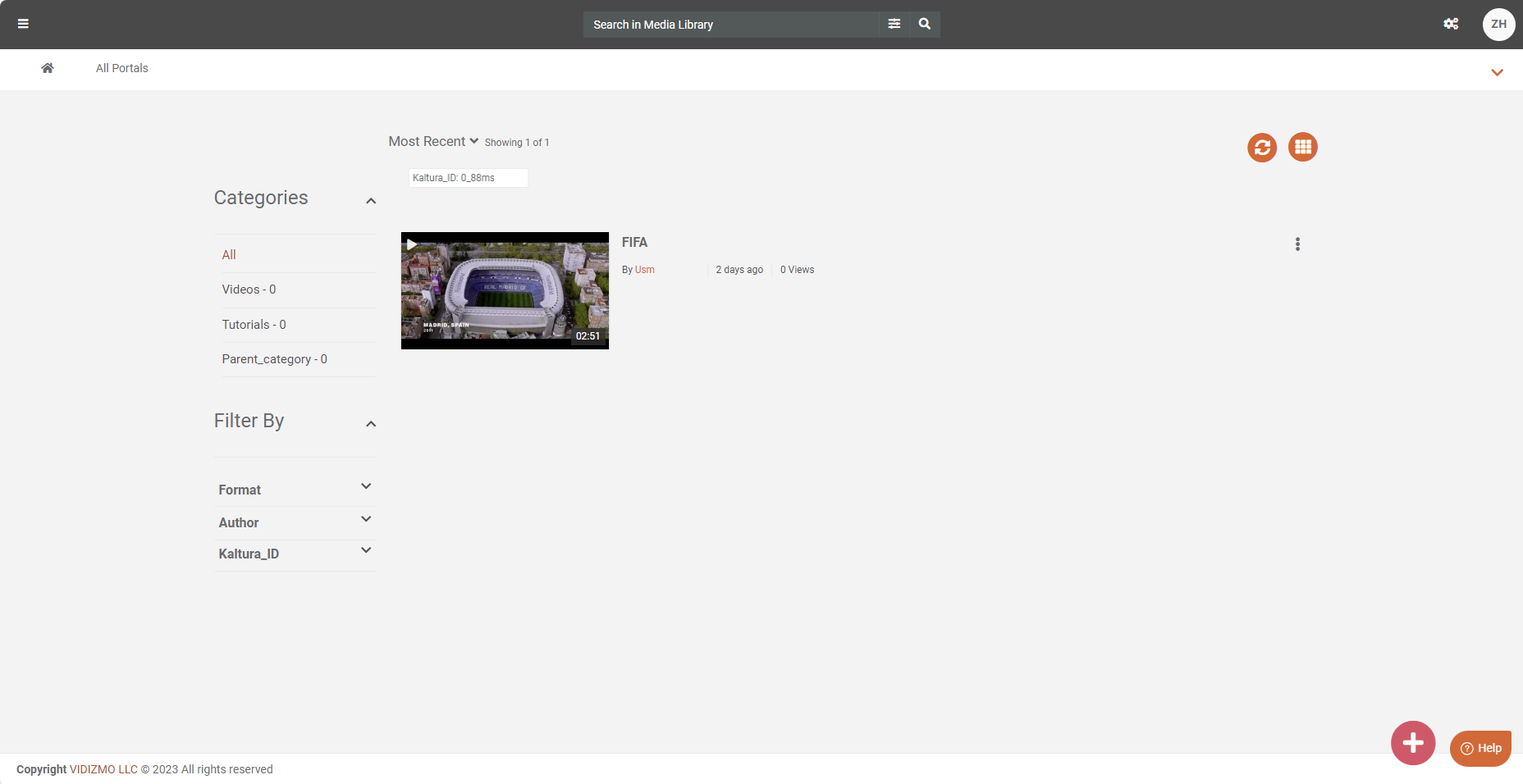 - VIDIZMO will display the ingested content that has been searched using the Kaltura ID. This enables users to search for ingested content from the Kaltura ID in VIDIZMO by utilizing the advanced search feature.