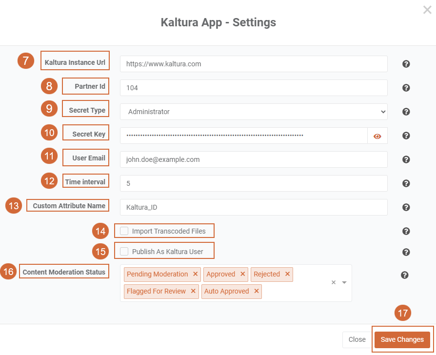 10. Content Moderation Status: To successfully ingest content from Kaltura to VIDIZMO, choose the desired moderation status from the dropdown menu. VIDIZMO exclusively ingests content with the selected moderation statuses, ensuring a seamless and controlled content moderation process.