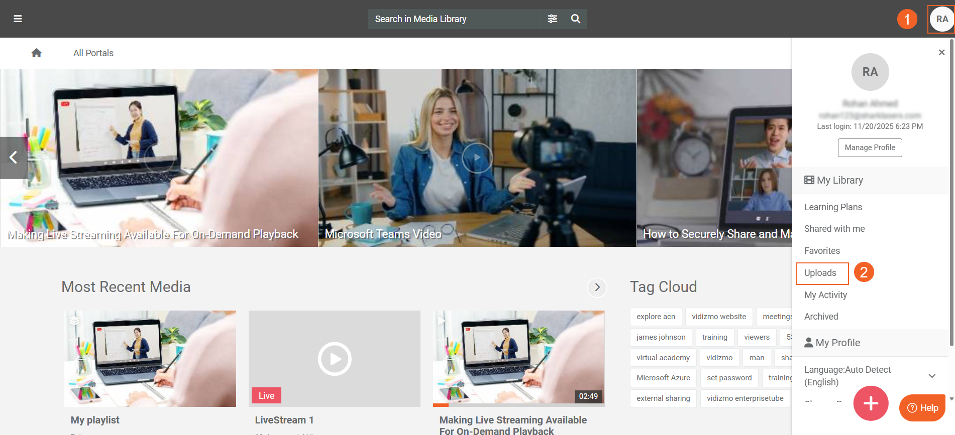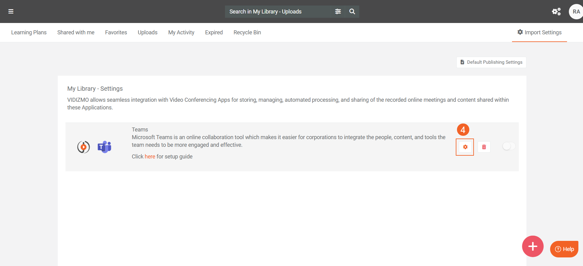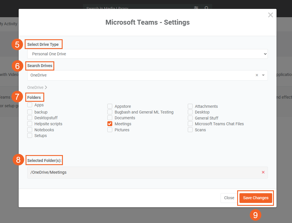 Use the Microsoft Teams app in VIDIZMO to ingest content from your organization's Teams into your VIDIZMO Portal. Once connected, you can select the drives and folders that contain your Teams files (such as meeting recordings or channel files) and let VIDIZMO sync them into your library.