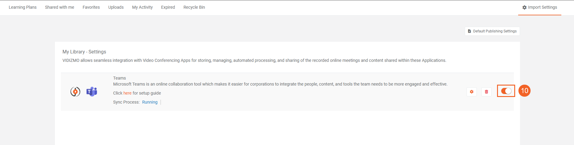 Sync Process: Displays the current synchronization status, such as Running or Finished. If the process fails, an error message is also shown. Last Synced Attempt: Indicates the most recent date and time (in local format) when the processor attempted to retrieve content from Microsoft Teams cloud storage. This information helps you stay informed about the synchronization status of your files in the VIDIZMO portal.