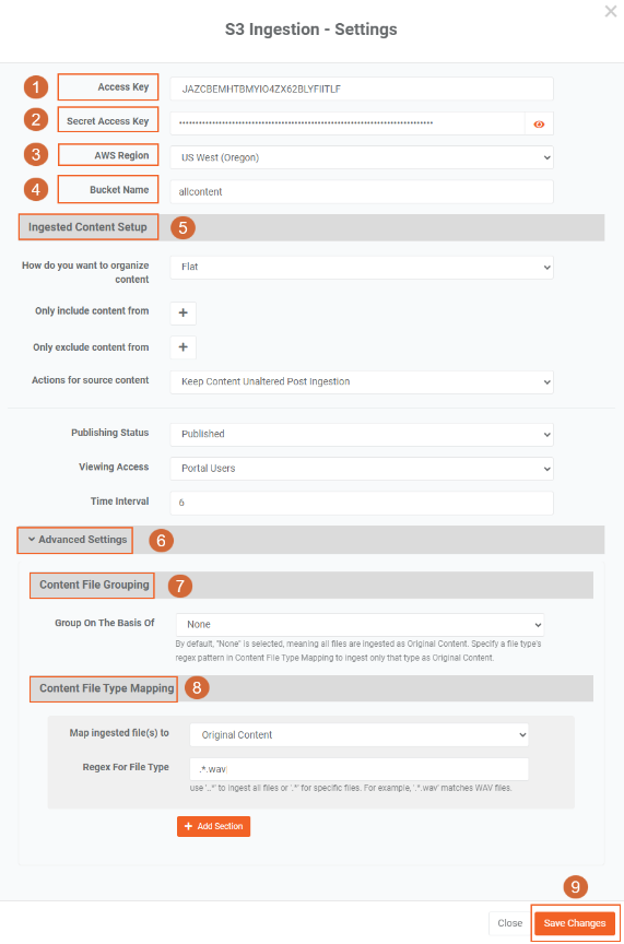 - Target S3 Bucket Name: Enter the name of the AWS bucket to which the content will move after ingestion.