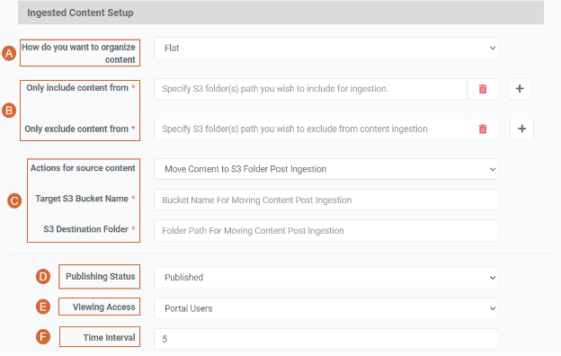 - S3 Destination Folder: Specify the S3 bucket directory where the content should be relocated after ingestion in the portal. Example: folder/subfolder. It's important to note that if the specified folder doesn't exist in the bucket, AWS will create it accordingly.